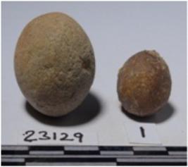 | Description / विवरण | A stone sling ball, round in shape of smooth surface. |
