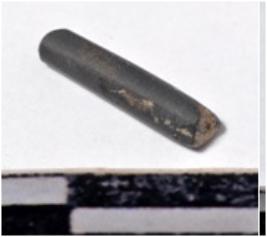 | Description / विवरण | A fragment of a stone drill bit, circular in section broken both end of smooth surface. |