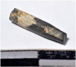 | Description / विवरण | A fragment of a stone drill bit, circular in section, broken from both end of smooth surface. |