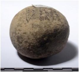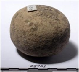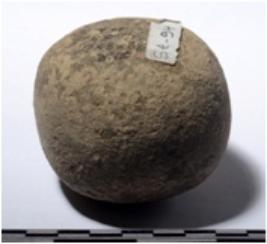 | Description / विवरण | A stone sling ball round in shape of rough surface. |