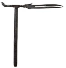 | Description / विवरण | It is a Steel shaft locally known zaghnol, it has two-pronged blade with its head terminating elephant s figures. |