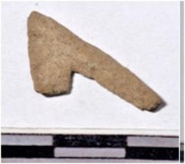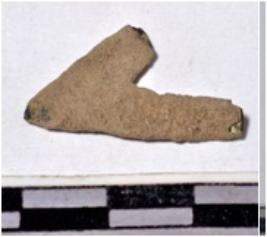 | Description / विवरण | A fragment of a copper arrow head triangular in shape pointed at one end of rough surface. |