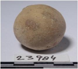 | Description / विवरण | A stone sling ball round in shape of rough surface. |