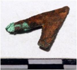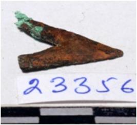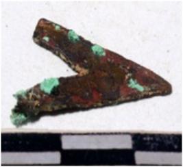 | Description / विवरण | A fragment of a copper arrow head triangular in shape pointed on one end of rough surface. |
