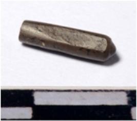 | Description / विवरण | A fragment of a stone drill bit circular in section broken from one end of smooth surface. |