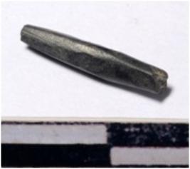 | Description / विवरण | A fragment of a stone drill bit circular in section broken from one end of smooth surface. |
