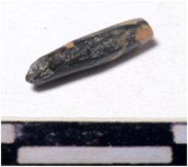 | Description / विवरण | A fragment of a stone drill bit circular in section broken from one end of smooth surface. |