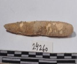 | Description / विवरण | A bone point having pointed one side, circular in section of rough surface. |