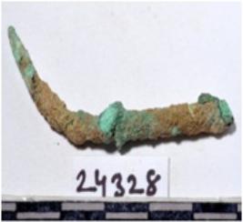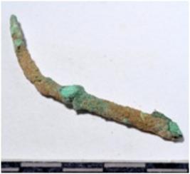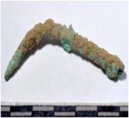 | Description / विवरण | A fragment of a copper nail circular in section broken from both end of rough surface. |
