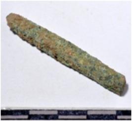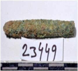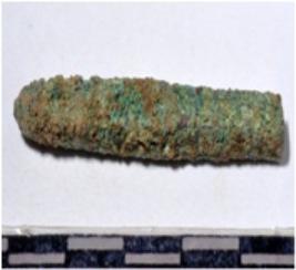 | Description / विवरण | A fragment of a copper nail circular in section pointed at one end of rough surface. |
