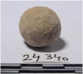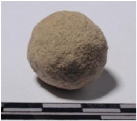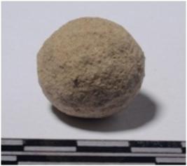 | Description / विवरण | A stone small sling ball round in shape of rough surface. |