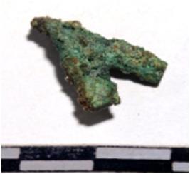| Description / विवरण | A fragment of a copper mended triangular shaped arrow head, broken pointed one end of rough surface. |
