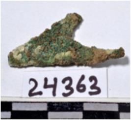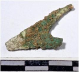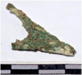 | Description / विवरण | A fragment of a copper arrow head, triangular in shape having broken from pointed end of rough surface. |