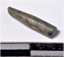 | Description / विवरण | A fragment of a stone drill bit, circular in section broken from both end of smooth surface. |