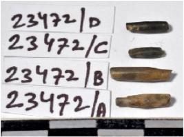 | Description / विवरण | A fragment of a stone drill bit, pointed one end, circular in section of smooth surface. |