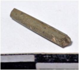 | Description / विवरण | A fragment of a stone drill bit, circular in section, broken from both end of smooth surface. |