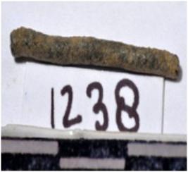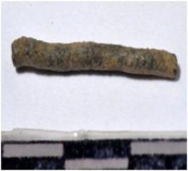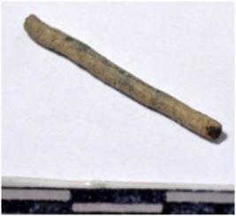 | Description / विवरण | A fragment of a copper nail, broken both end, circular in section of rough surface. |