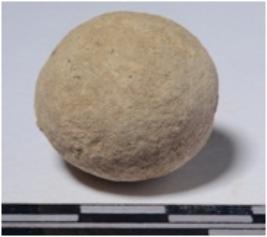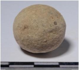 | Description / विवरण | A stone sling ball round in shape of rough surface. |