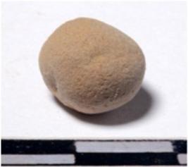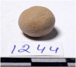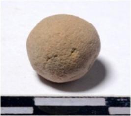 | Description / विवरण | A terracotta sling ball round in shape of smooth surface. |