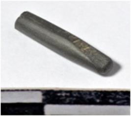 | Description / विवरण | A fragment of a stone drill bit, circular in section broken from one end of smooth surface. |