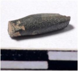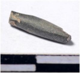 | Description / विवरण | A fragment of a stone drill bit circular in section broken from one end of smooth surface. |