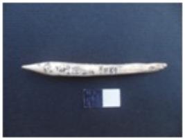 | Description / विवरण | Fragmentary Bone stylus. One of the edges was broken and pores are seen. |