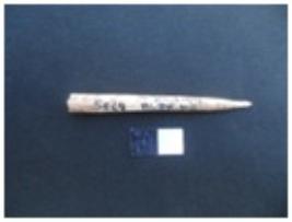 | Description / विवरण | Fragmentary Bone stylus. One of the edges was broken and there is mud accretion on the surface. |