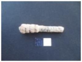 | Description / विवरण | Fragmentary bone stylus with a decorated head. |