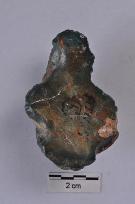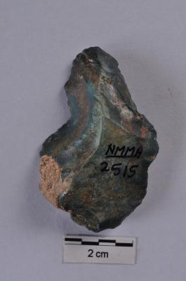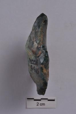 | Description / विवरण | Hollow Scraper prepared on green Chert flake, retouches on concave working edge. |