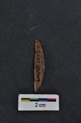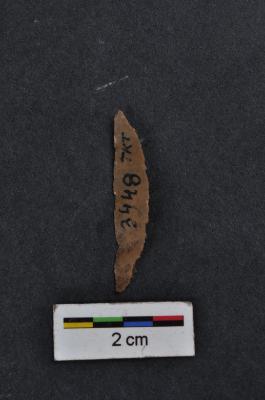 | Description / विवरण | Lunate, long, pointed at ends, a ridge on dorsal surface, use-ware marks on working edge. |