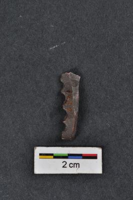 | Description / विवरण | Serrated blade, diffused bulb with prepare platform at proximal end, backing on one edge and another edge serrated, a ridge on dorsal surface. |