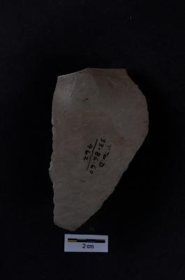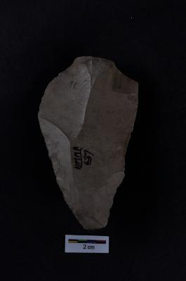 | Description / विवरण | Prominent bulb with striking platform at proximal end, two ridges on dorsal surface. |