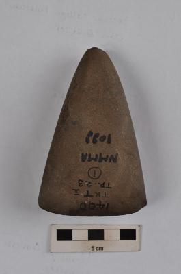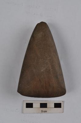 | Description / विवरण | Polished stone axe, pointed butt end, straight working edge. |