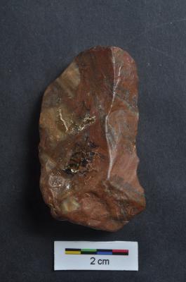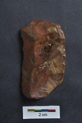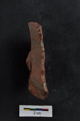 | Description / विवरण | Side Scraper, long body, striking platform and bulb not visible, a ridge on dorsal surface, retouches on working edge. |