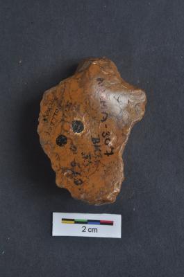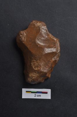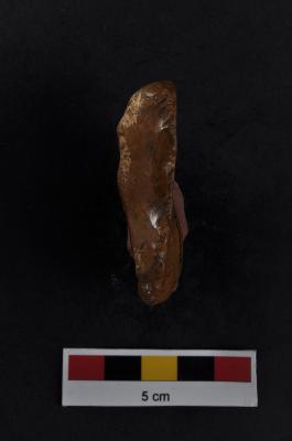| Description / विवरण | Scraper, prominent bulb with ventral surface, retouches on convex working edge. |