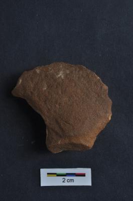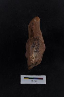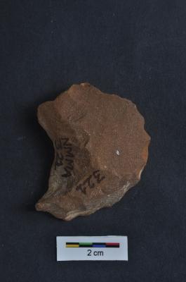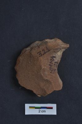 | Description / विवरण | Crescent- shaped scraper, convex working edge, retouches on working edge, side struck, prominent bulb with striking platform |