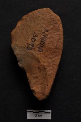 | Description / विवरण | Scraper, cortex visible on surface, retouches on, working edge |