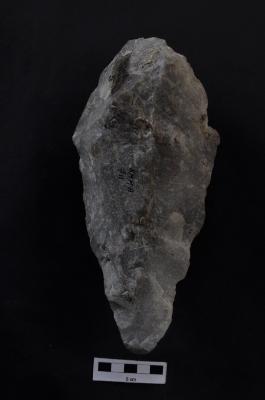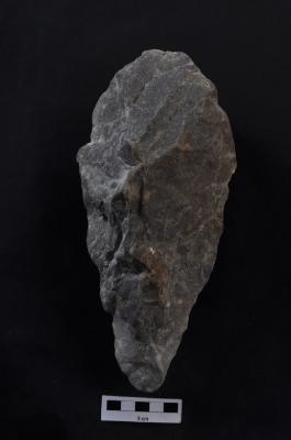 | Description / विवरण | Handaxe, narrow, pointed, bifacial. |