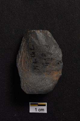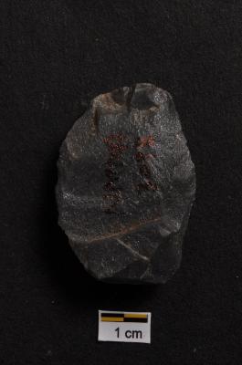 | Description / विवरण | Scraper, oval shape, prominent bulb with striking platform at proximal end, retouches on convex working edge. |
