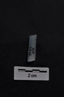 | Description / विवरण | Blade, parallel sided, both ends broken, a vertical ridge on dorsal surface, use-ware marks on both working edges. |