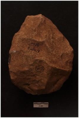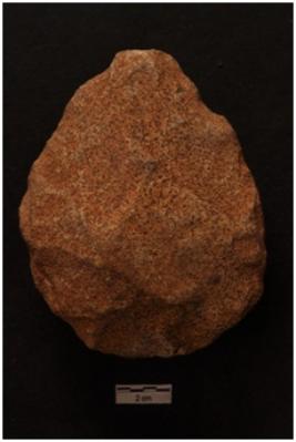 | Description / विवरण | Handaxe, pear shape, bifacial, retouches along the periphery. |