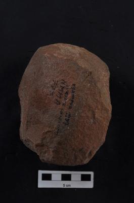 | Description / विवरण | Hammer stone, oval shape, partly chipped off surface. |
