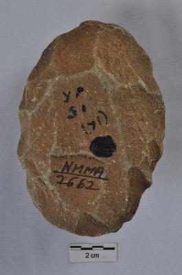 | Description / विवरण | Scraper, oval shape, flaking on both surfaces. |