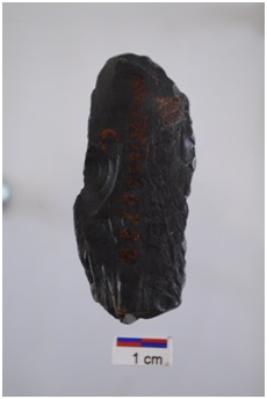 | Description / विवरण | Blade, a ridge on dorsal surface, retouches on working edges. |