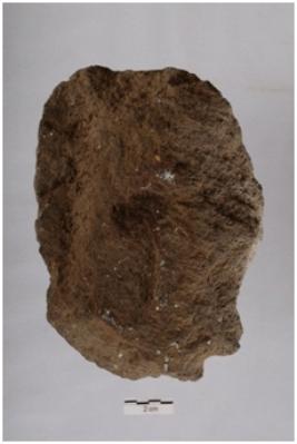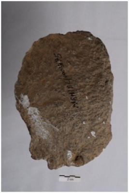 | Description / विवरण | End scraper, side struck, prominent bulb on ventral surface, retouches on working edge. |