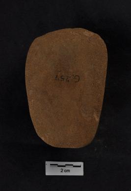 | Description / विवरण | Celt, roughly oval shape, convex working edge, semicircular butt end. |