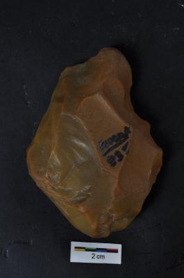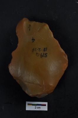 | Description / विवरण | Scraper, prominent bulb with striking platform visible, retouches on working edge. |