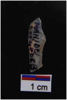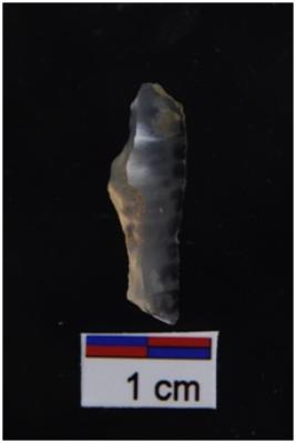 | Description / विवरण | Backed blade, retouches on working edge, backing on another edge. |