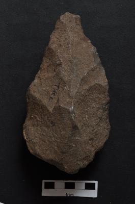 | Description / विवरण | Handaxe, long pointed, bifacial. |