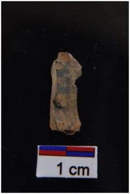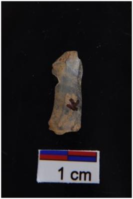| Description / विवरण | Blade, diffused bulb with striking platform at proximal end, two ridges on dorsal surface, use wear marks on both edges. |